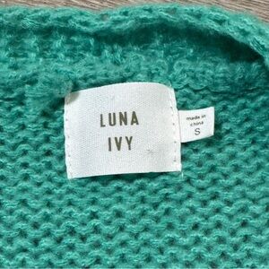 Luna Ivy 3D Knit Strawberry V-Neck Cardigan Sweater, Mint / Sea Foam Green Small