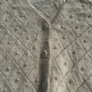 Luna Ivy Cream Diamond Pattern Pearls Buttons Cardigan Sweater Women NWT medium