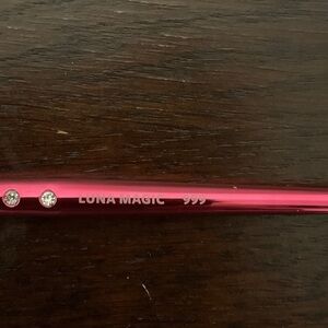 Sleek pink makeup brush with soft bristles. Perfect for blending and applying makeup.