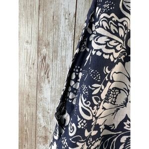 Luna Moon A-Line Full Skirt Size M Navy White Floral Print Ruffle Eyelet Trim