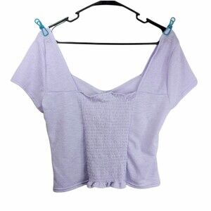 LUNA MOON Lila Square Neck Blouse Style: Casual Color: Lilac Purple Pattern Type: Plain Length: Crop Season: Summer Details: Rib-Knit Fit Type: Slim Fit Neckline: Square Neck Sleeve Length: Cap Sleeve Sleeve Type: Regular Sleeve Placket Type: Pullovers Composition: 98% Polyester, 2% Spandex Size XL 004-1317