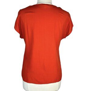 Luna Moon Short Sleeve Blouse Shirt Womens Small Orange Embroidered Vneck