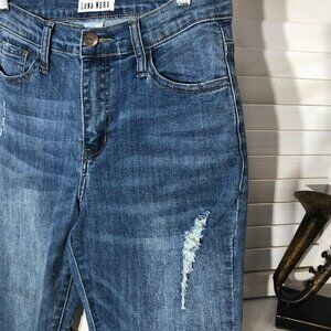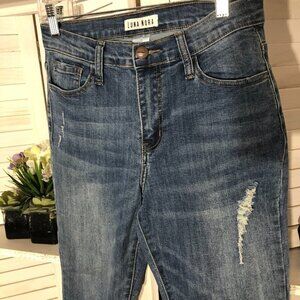 Luna Nora High Rise Distressed Skinny Jeans Blue Size 4