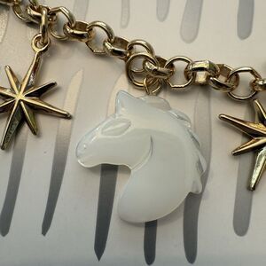 Luna Norte Gold Tone Genuine Mother of Pearl Unicorn Star Charm Necklace 18” New