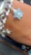 Elegant silver charm bracelet with star and heart accents. Features pastel blue and pink charms.