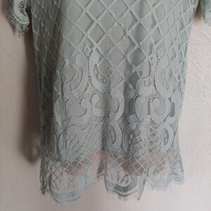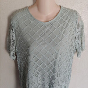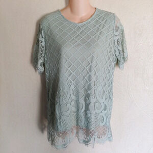Luna Rae Mint Green Crochet Lace Short Sleeve Blouse Top Size Women's Large