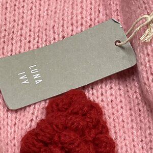 Luna Sweater Womens M Pink Open Knit 3D Floral Oversized Cropped Cardigan Y2K