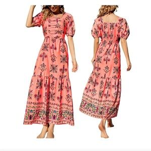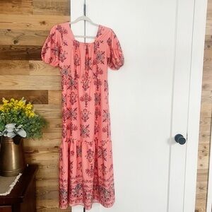 Luna Tuccini Floral Puff Sleeve Ruched Maxi Dress Small