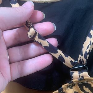 Luna Tuccini animal print one piece size 2.. built in padded shelve bra .. pads are removable… adjustable straps…some of the black spots are shiny.. really levels up swimsuit… good condition..