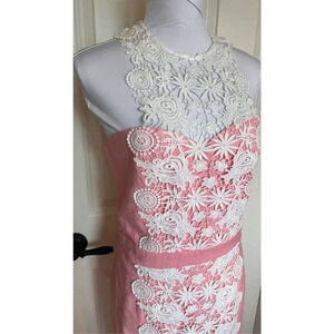 Luna of London Women’s Size 12 Pink Embroidered Lace Sheath Dress Back Zipper