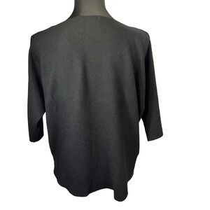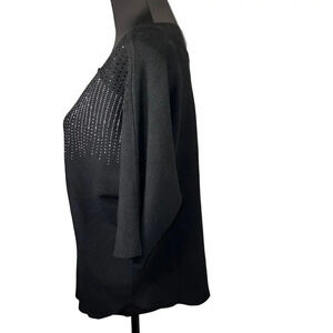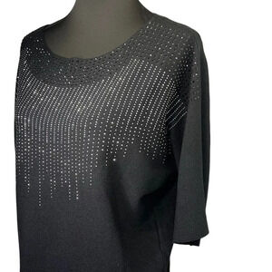 Luna, ribbed short sleeve front torso embedded with silver black shimmering rhinestone, side hem vent stretchy Viscose Blend top XL