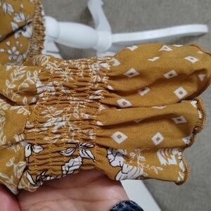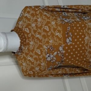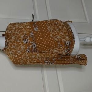 Luna size medium flounce sleeve floral top gold/white color gathered hem.