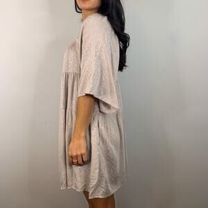 LunaChix Light Tan Ruffle Flowy Shift Dress. Square neck. Tie behind the neck. Flowy half sleeves. G25