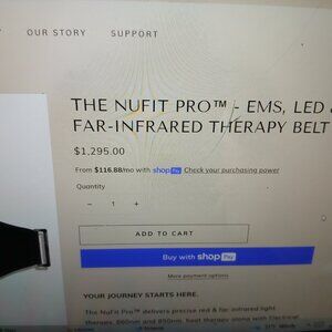 BRAND NEW - NuFit Belt delivers red and far infrared light 660 nm and 850 nm heat therapy along with Electrical Stimulation (EMS) to the desired target area resulting in muscle movement and constant contraction.