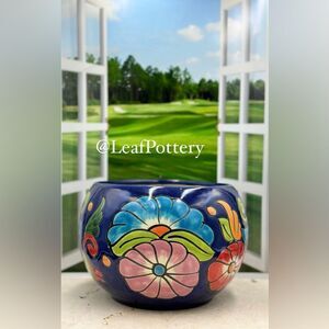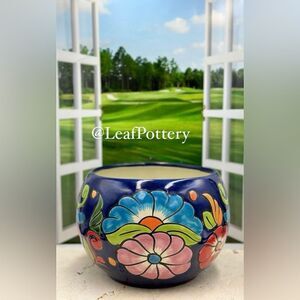 Dimensions: 6.5”H x 9”W, Opening 7”, weight 3lbs 14.8oz, Drainage Hole, Color: Multi Colored, Made in Mexico, Add a bright spot to your home or patio with this Talavera planter. This unique Mexican planter is the perfect home for your medium houseplants. Handmade and hand painted by talented artisans in Mexico. Don’t forget to dress up your plants 🪴