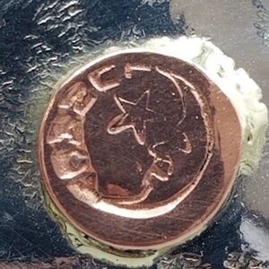 This unique mini bag is made from mixed metals with silver, gold, and copper tones.