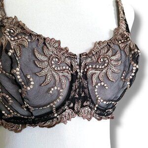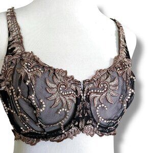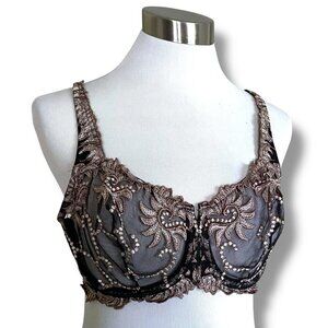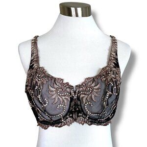 Lunaire 36D Bra Black Taupe Sevilla Embroidered Underwire Sheer Lace Mesh 14011