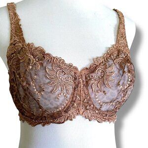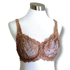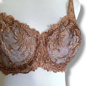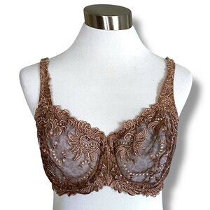 Lunaire 36D Bra Sevilla Tan Lace Animal Print Semi Demi Underwire Sheer 14013