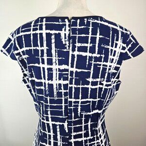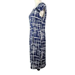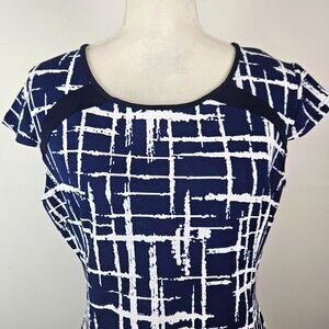 Lunajany Womens Navy & White Abstract Print Sheath Dress Scoop Neck Size Large