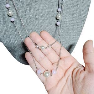 Embrace the subtle radiance of our "Lunar Elegance Layered Necklace," where vintage-inspired charm meets modern sophistication. This fashion-forward piece boasts a multi-strand silhouette, featuring an array of lustrous pearls and delicate pastel beads, reminiscent of a serene, moonlit sky.Each strand is meticulously curated, presenting a harmonious blend of textures that dance in the light. The silver-tone chain provides both durability and timeless elegance, ensuring this necklace transitions seamlessly from daywear to evening glam.Ideal for those who adore sophisticated style, this elegant accessory is a versatile addition to any jewelry collection. It's not just a necklace; it's a statement of contemporary design, promising to elevate your ensemble with its unique, fashion-forward appeal.Whether you're dressing up for a special occasion or adding a touch of class to your everyday look, the "Lunar Elegance Layered Necklace" is the perfect companion. Let it drape gracefully around your neck and bask in the compliments that are sure to follow.