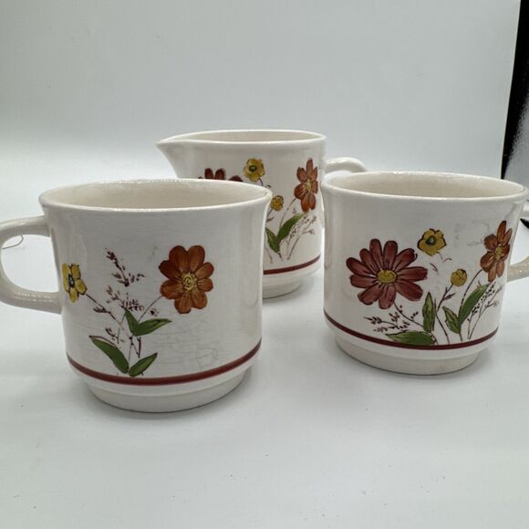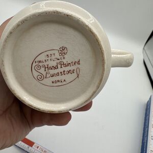 Lunastone Korea 1527 Fiesta Tea Cups Creamer Hand Painted Forest Flowers Lot 3