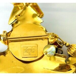 The Lunch At The Ritz (LATR) Christmas Tree Brooch is a vintage, signed piece featuring a multicolor enamel Christmas tree design with white/colorless rhinestones. This fashion jewelry piece is a pendant that can be worn as a brooch, bringing a touch of holiday cheer to any outfit. The unique and original design by Lunch at The Ritz makes it a perfect accessory for the Christmas season, adding a festive and elegant touch to any ensemble.