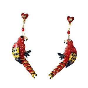 • Lunch At The Ritz Parrot Bird Dangle Post Earrings