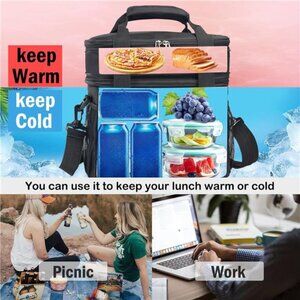 🧿【Lunch pack for multi-scene use】The lunch bag has a large capacity,which can be kept warm and can also be placed with or ice packs,which is suitable for the refrigeration of drinks,fruits,snacks and other foods;The double-layer installation prevents crushing and accumulation of goods.Insulated bags meet the needs of different groups such as going to work,workers,etc.Our reusable lunch box can keep the food cold/hot/fresh for hours,which is perfect for on-the-go meals,picnics,road trips,beaches,as well as to have lunch in the office,outdoors