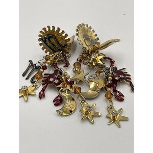 Lunch at The Ritz Scorpio Zodiac Post Dangle Earrings VTG 90s Signed Menu Card