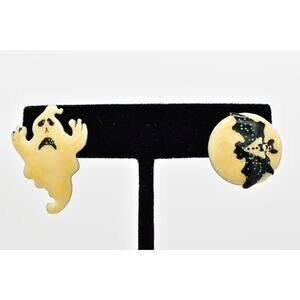 Lunch at The Ritz Vintage Halloween Earrings Ghost Vampire Bat Moon Signed Bin5