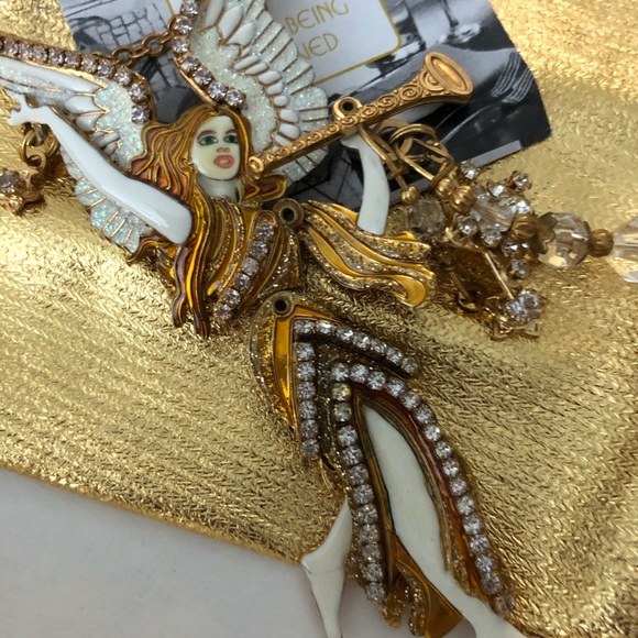 Vintage 2000 turn of the century pendent/brooch. In 24kt gold adorned with exquisite Swarovski crystals. Never worn, in original box with original pouch and authenticity card.