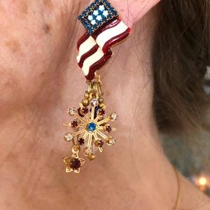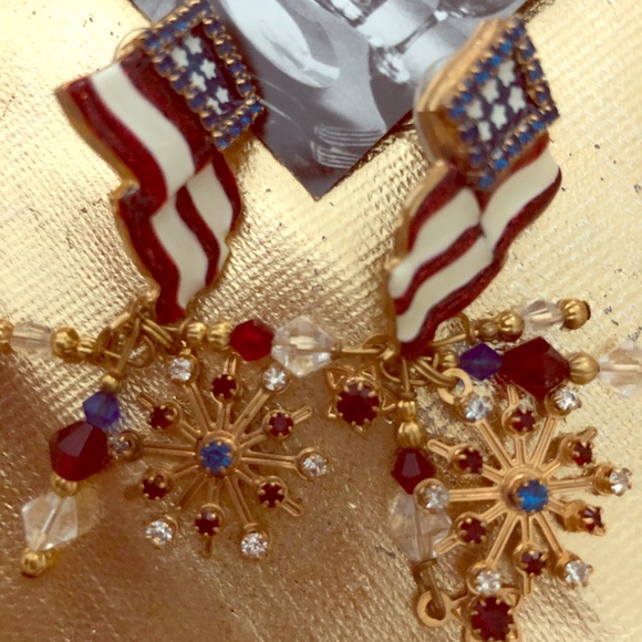 Vintage 2000 turn of the century celebratory patriotic earrings. 24kt gold plate with genuine Swarovski crystals. Commemorative design for America. Never worn, in original pouch, box and authenticity card. Use AFFIRM to purchase this item.