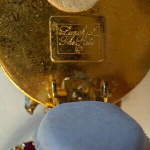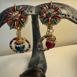 Lunch at the Ritz Poinsettia with dangling ornament surrounded by swarorski crystals. Clip on. These are very festive and perfect for your Christmas party.