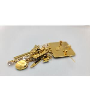 Lunch at the Ritz Carte Du Jour "Pop Quiz" Brooch Pin Pendant. Can be worn as brooch/pin or hang from chain as a pendant. This vintage brooch is often described as rare. Designed by Esme Hecht and & Alexis Watts of New York in the 1980/90s. Known for their playful and collectible designs, Lunch at the Ritz jewelry is beloved by fans and collectors worldwide. The company went out of business in 2012. This colorful brooch pin pendant jewelry is an artistic statement. It features a black enameled chalkboard design with "1+2=3" with multi-colored enameled dangling school-related charms, along with 2 strands of clear Austrian crystals, and topped with a thick coating of 24k gold creating glamour and glitz. It is the perfect "teacher appreciation" or "school-themed" collectible jewelry gift. In outstanding condition. Looks new and shiny with perfect hand-applied enamel and sparkling crystals. Manuf flaw on back side of corner. 3 3/8" L x 1 3/8" x 1 1/4" top. Stamp on back. Weight 18.12g.