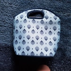 NWOT Cute lunchbox with pink lining inside and zippered pocket on the front.