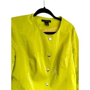Lundstrom Jacket Womens 10 Waxed Linen Bright Yellow Pockets Snap Front Modern