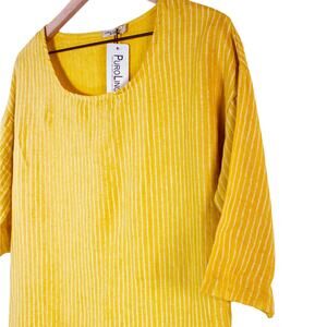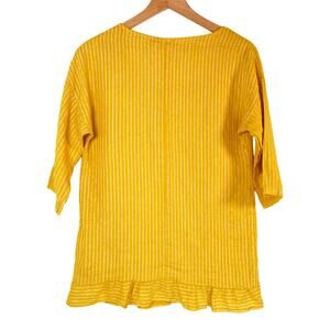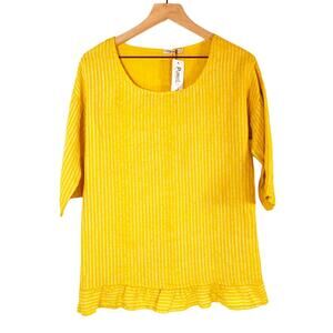 Lungo L'Arno 100% Italian Linen Tunic Shirt in Yellow Stripe Size Small NWT