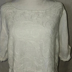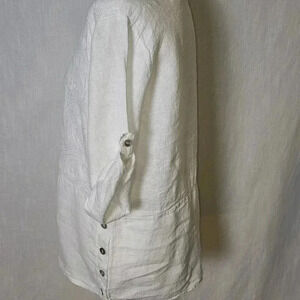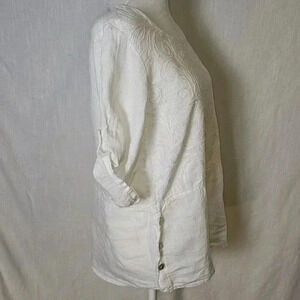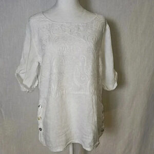 Lungo L'Arno 100% Linen Roll Sleeve White Cottagecore Embroidered Shirt SZ M