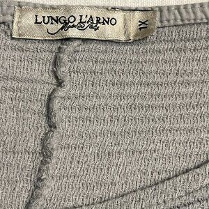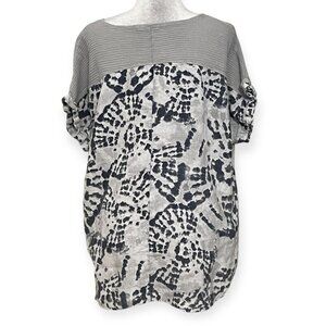 Lungo L’Arno 100% Linen Top Blouse 1X Made in Italy Gray Abstract Print