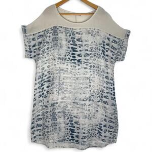 Lungo L'Arno Boxy Linen Dress Size 1X Blue Gray Animal Print Mesh Plus Size