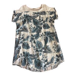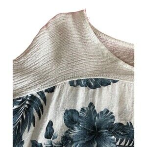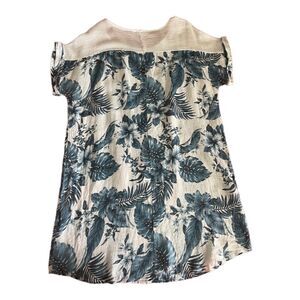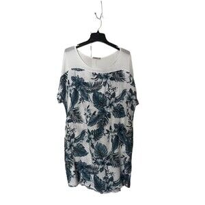 Lungo L'Arno Linen Dress 1X Lagenlook Women's 1X White Blue Floral Short Sleeve