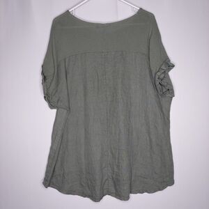 Lungo L'Arno Linen Top Women 1X Green Short Dolman Sleeve Mixed Fabric Gauze