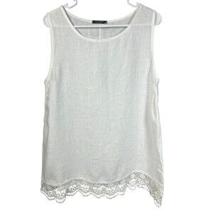 Lungo L’Arno Made in Italy White Linen Tank Top Women’s Medium Crochet Lace Hem