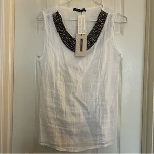 Lungo L'Arno NWT White Beaded 100% Linen Tank Blouse Made In Italy Size Small