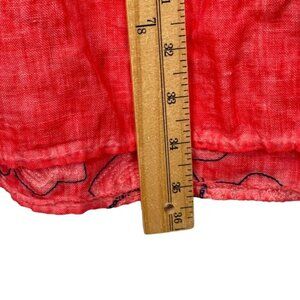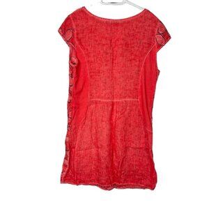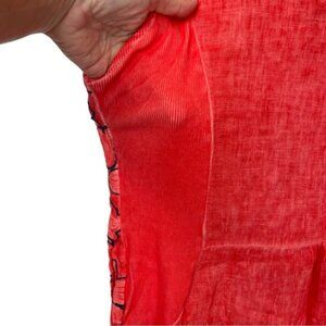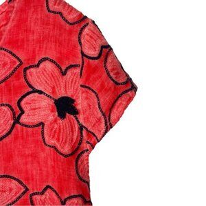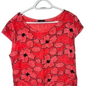 Lungo L’Arno Women’s Red Floral Linen MIDI Dress Bloomchic Cap Sleeve Size Large