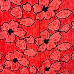 Lungo L’Arno Women’s Red Floral Linen MIDI Dress Bloomchic Cap Sleeve Size Large