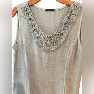 Lungo L’Arnt Sz M Sage Green Linen Detailed Collar Sleeveless Side Pockets Dress