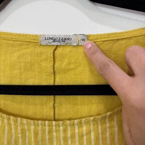 Features: Lungo L'arno Butter Yellow Striped Linen Top. Made in Italy. Lightweight & breathable!
