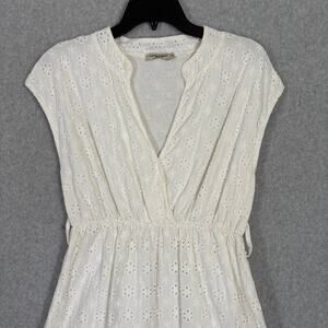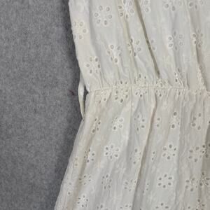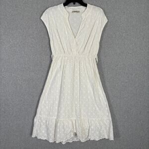 Lungo Larno Dress Small White Tiered Ruffle Midi Eyelet Cottage Boho Beach Vacation Resort Coastal Western Cowgirl Rodeo Elastic Waist Cap Sleeve Flowy Fit Flare Lined Prairie Floral Embroidered
