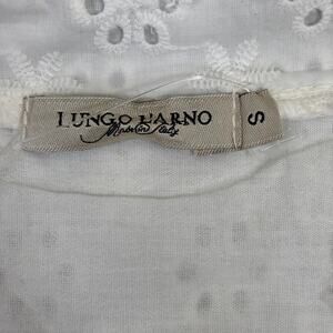 Lungo Larno Dress Small White Tiered Ruffle Knee Eyelet Cottage Boho Coastal